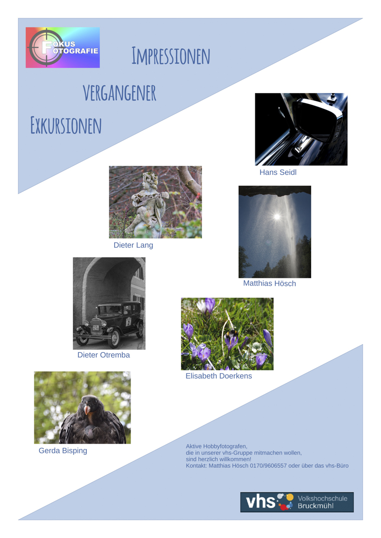 Erfolge in Wettbewerben, Veröffentlichungen, Ausstellungen und Verkäufe sind Höhepunkte in einem fotografischen Leben. Bei den Verkäufen von meinen Bildern  ist noch Luft nach oben, Veröffentlichungen waren schon von Anfang an abgehakt, und Ausstellungen werden von den VHS-Fotogruppen organisiert, in denen ich Mitglied bin. Die Fotos sind auch auf der Website der VHS-Fotogruppe zu sehen. Der Höhepunkt einer Ausstellung ist zu Beginn die Vernissage – die eigenen Bilder können  vorgestellt und erläutert werden.