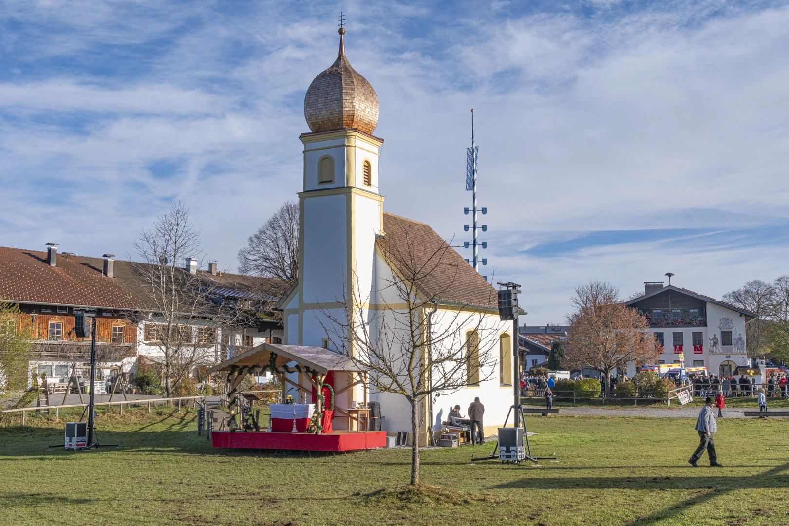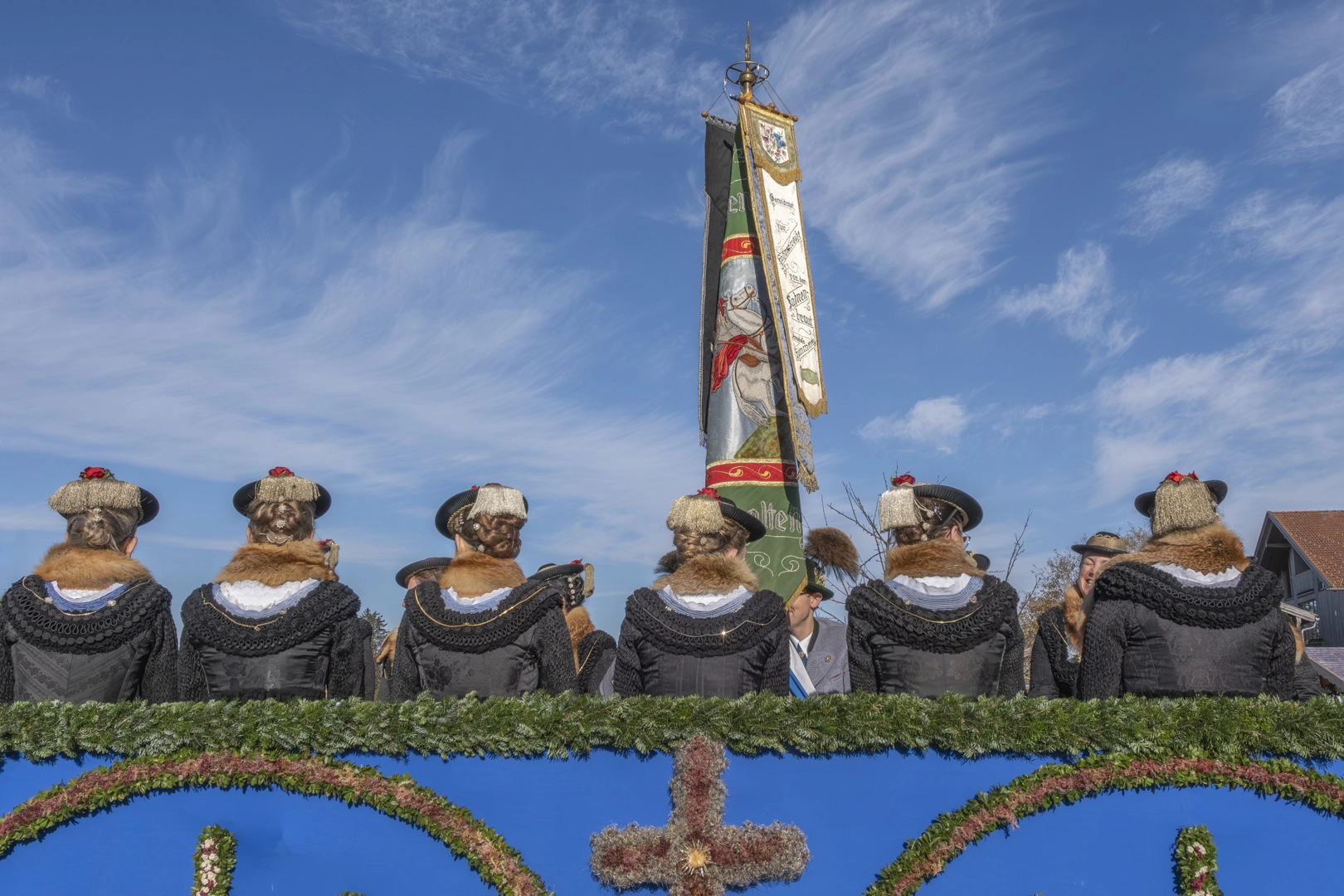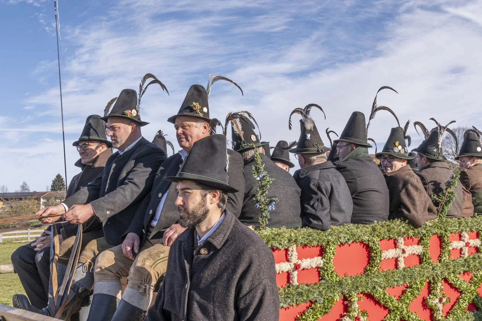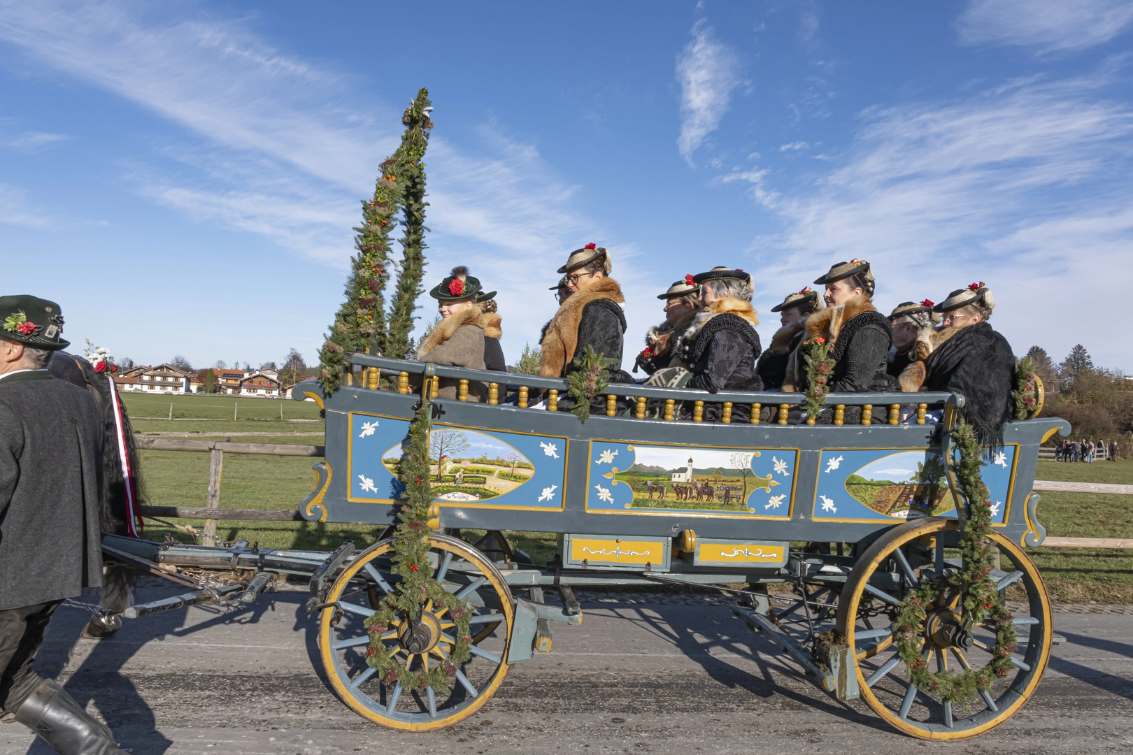 Die Prozessionen zu Pferde finden zu Ehren des heiligen Leonhard von Limoges (6. Jahrhundert) Anfang November statt. Als Schutzpatron der Nutztiere, vor allem der Pferde, werden Wallfahrten mit Tiersegnung unternommen. Wir fahren nach Hundham, die Morgennebel lösen sich gerade auf, die Pferde dampfen noch in der Kälte. Die 60 festlich herausgeputzten Gespanne drehen zwei Runden, erhalten dann die Segnung und versammeln sich vor der Leonhardikapelle. 09.11.2024