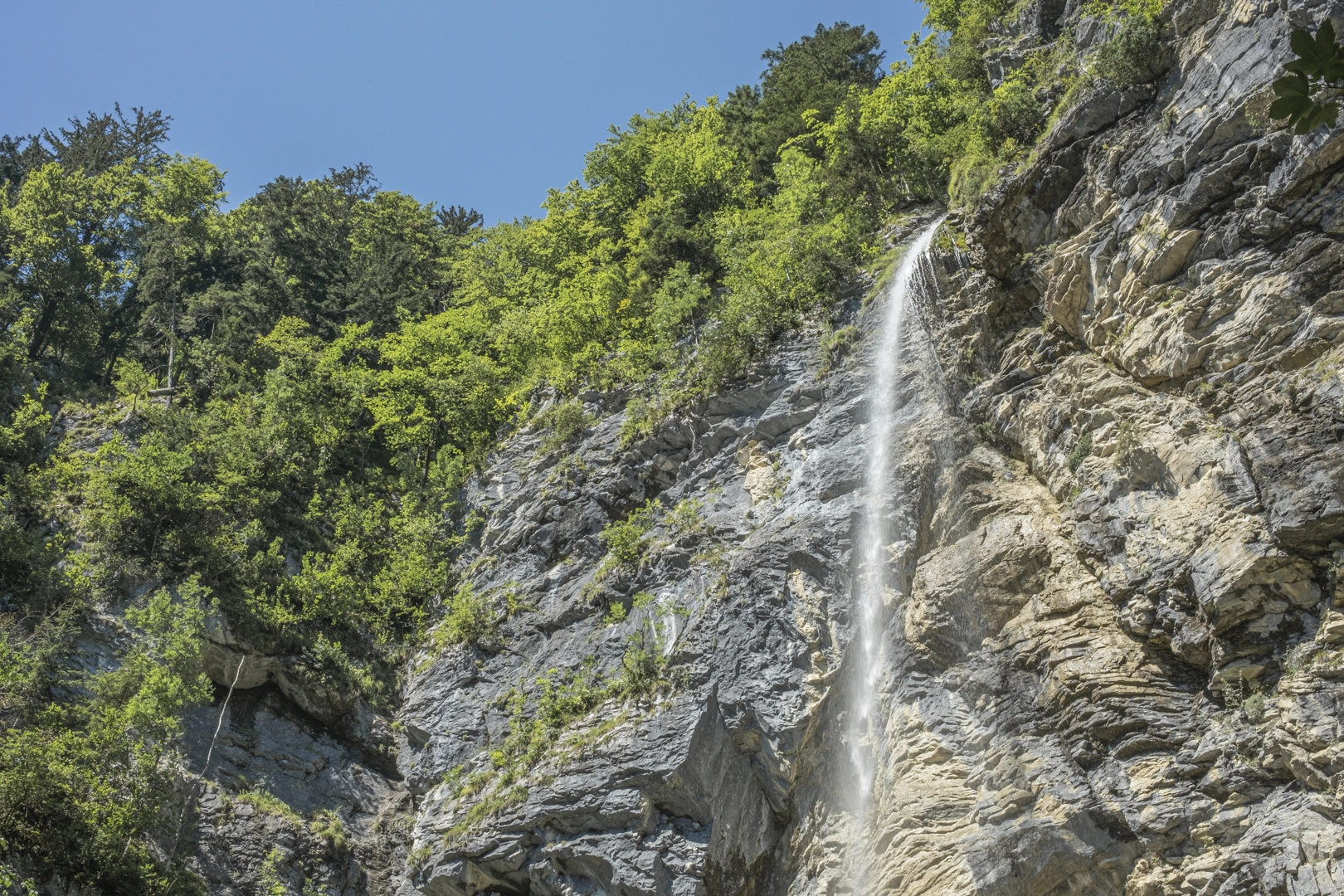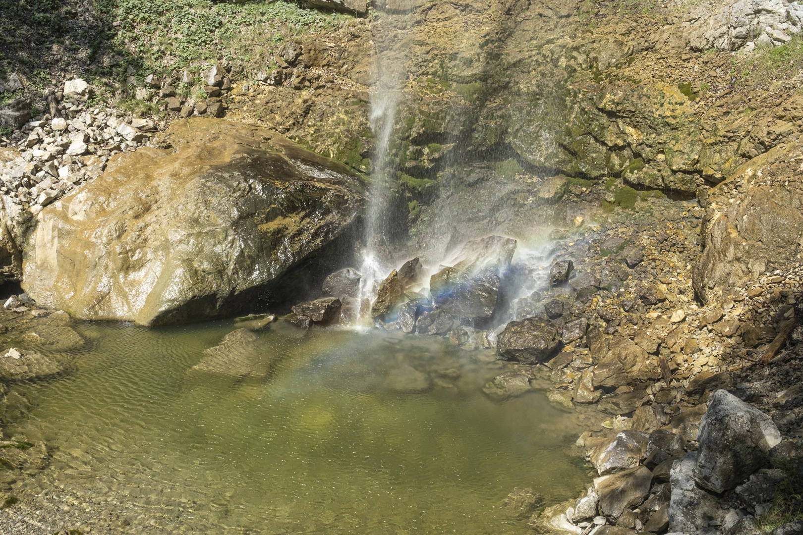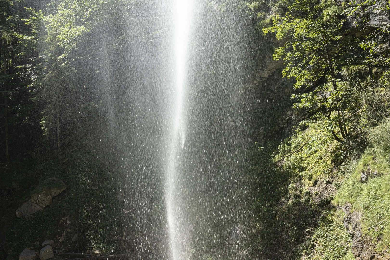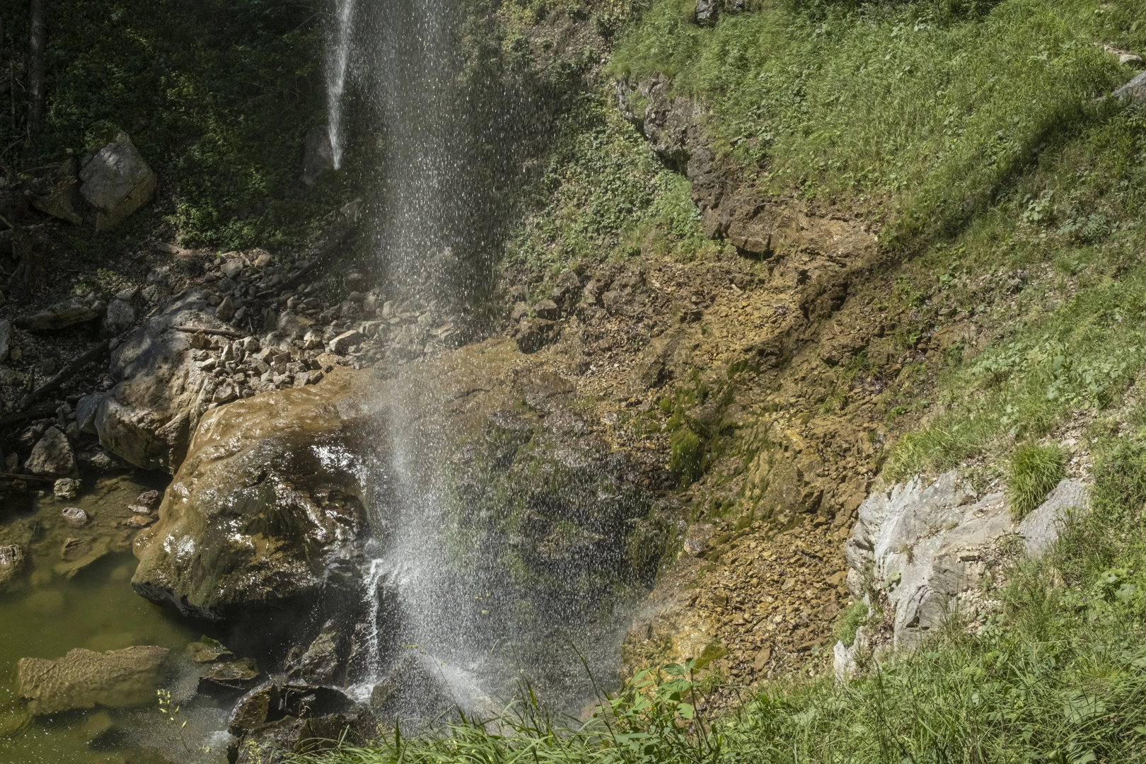 Der Wasserfall Schoßrinn südlich von Aschau wird als Frauenkraftplatz angepriesen. Ob auch Fotografen sich dort aufhalten dürfen? Viel Wasser ist heute nicht unterwegs. Auch das Gelände bietet fotografische Herausforderungen, es ist eher eng als weit. 06.07.2024