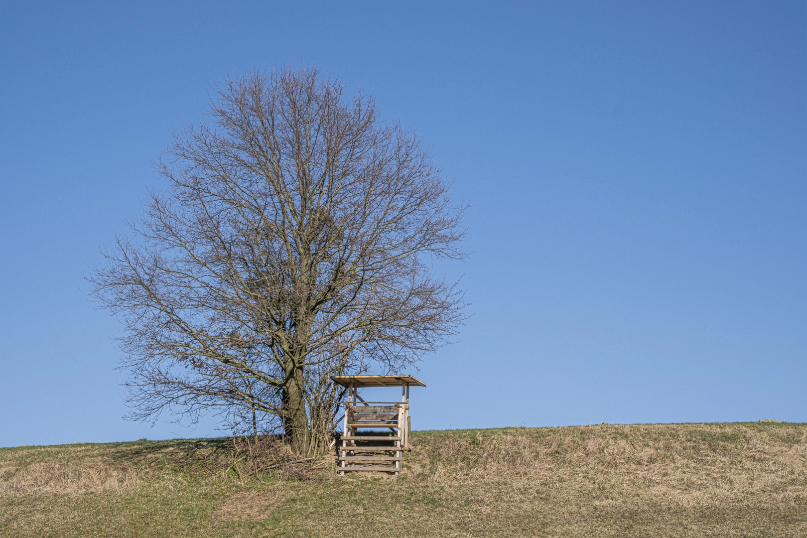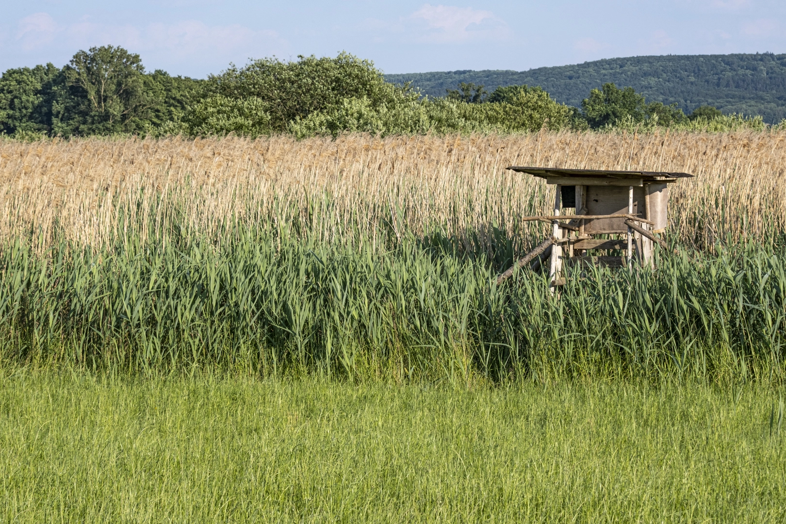 Eine zufällig entstandene Serie, der erste Hochsitz ist nicht lange allein geblieben. Inzwischen gibt es einen umfassenden Überblick über Hochsitze, der ständig erweitert wird. Was wir bemerken – die verschiedenen Bauweisen: aus Eisen, aus Holz, auf Rollen gelagert, zum Grenzschutz geeignet – die Lage: in offenem Gelände, versteckt zwischen Bäumen, im Schilf – das Alter: der Zahn der Zeit zeigt sich auch bei Hochsitzen.